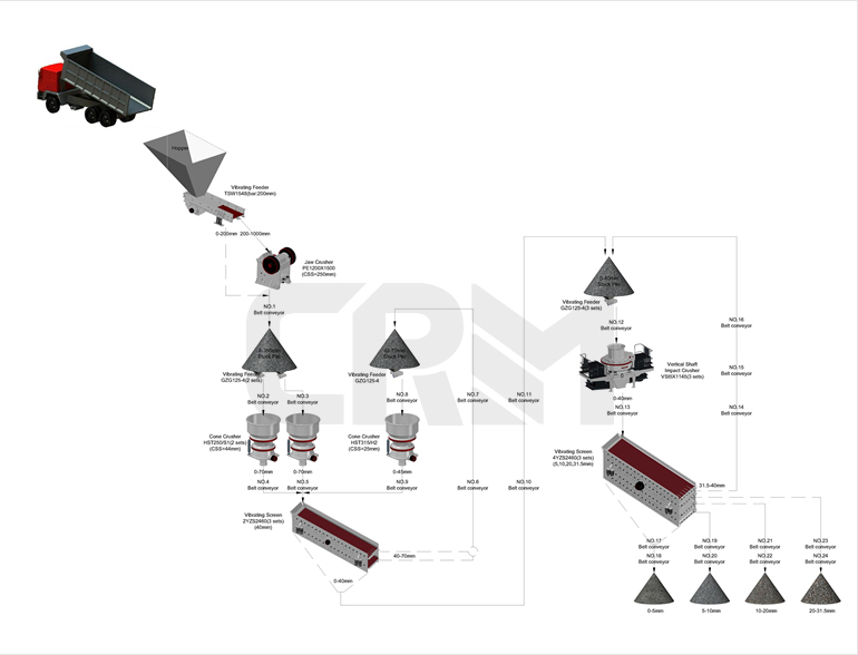 المعدات: كسارة فكية PE750x1060 ، كسارة مخروطية هيدروليكية HPT300